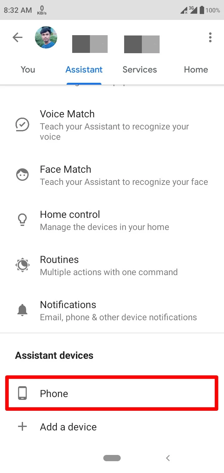 গুগল অ্যাসিস্ট্যান্ট ম্যানেজার ওপেন হলে অ্যাসিস্ট্যান্ট ট্যাবে গিয়ে পেজের একেবারে নিচের দিকে স্ক্রল করে "অ্যাসিস্ট্যান্ট ডিভাইস" থেকে আপনার ফোন সিলেক্ট করুন। তাহলে আপনার ফোনের গুগল অ্যাসিস্ট্যান্ট সেটিংস ম্যানেজার ওপেন হবে।
